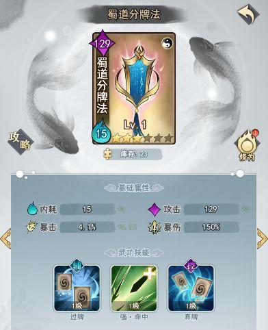 蜀道分牌法可在藏经阁中消耗武功券、普通武功券抽取;