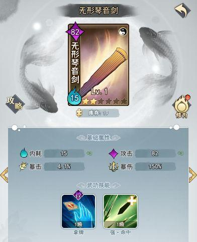 无形琴音剑可通过自身强命中技能增加拿牌概率,该卡可通过藏经阁、宝箱获取;