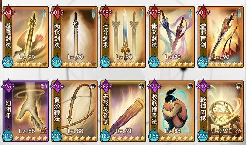 除了攻击剑其实也可以玩玩两仪剑、反伤剑、血盾流,这些玩法暂时还不是很完美,如果后面出新侠客、新武功可以考虑,我把卡组放下面大家了解一下就可以。