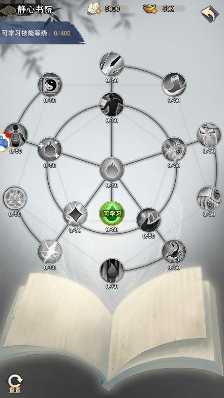 可以通过花费元宝重置学习的书院技能,并返还所有投入的材料
