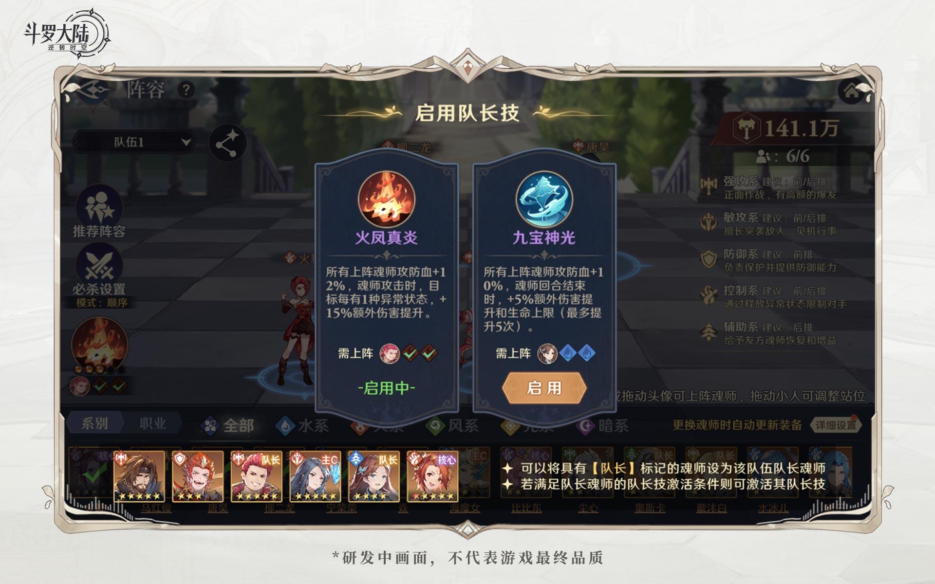 队长可以提供队长技能,根据队长的星级和上阵魂师的数量可以提升队长技能的等级,核心和主C作为该派系的重点输出魂师,在阵容中承担着主要的DPS角色地位。
