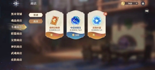 (2)高级商店中需要用高级斗魂币来购买,高级斗魂币可以通过每天去打帝国斗魂场获得。