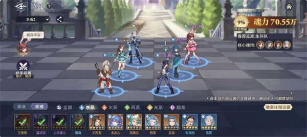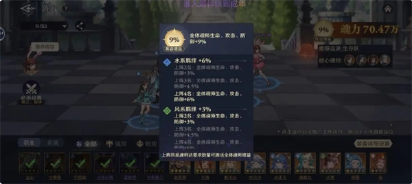从而组成3风3水获得9%的阵容增益,站位如图所示,打星斗时荣荣可以和邵鑫换位,防止荣荣被晕。