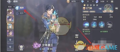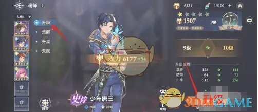 3、点击左侧的升级栏目,点击右下角的升级按钮即可提升魂师等级;