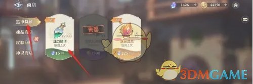 2、随后在商店页面,点击左侧黑市商铺,找到魂力精华;