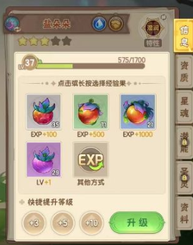 经验果同样也是获取精灵经验的一大手段。轻触经验条旁的加号,使用经验果,即可迅速积累大量经验。