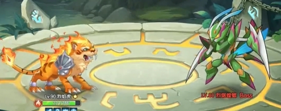 4、最后派出携带“战意Ⅱ”和“聚气”的烈焰虎,伤害加成效果叠满后,使用“闪焰獠牙Ⅲ”并衔接绝技击败敌人。