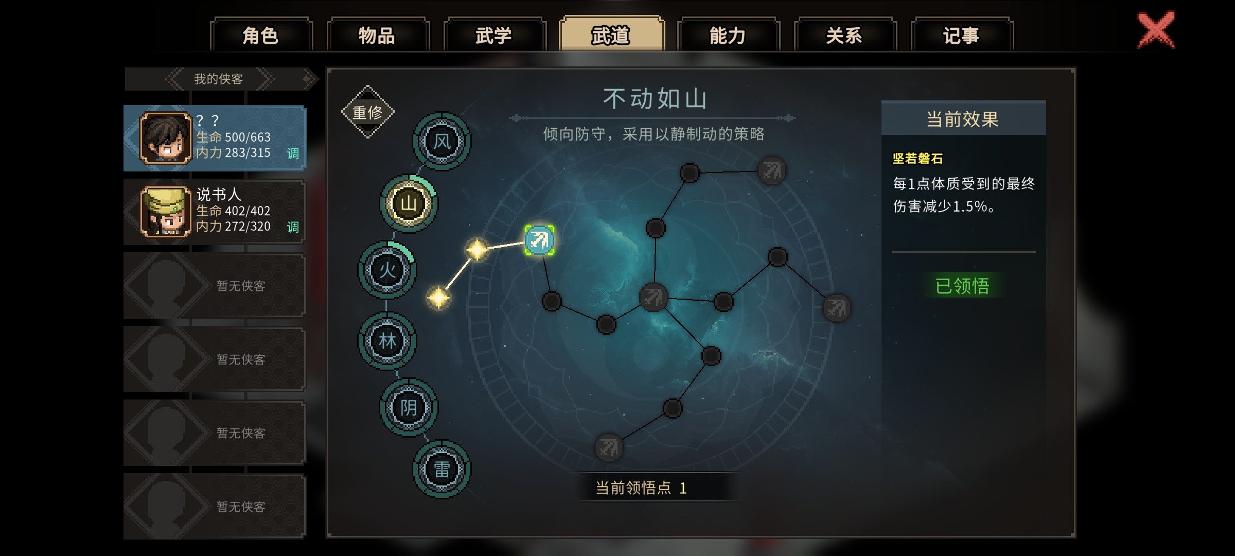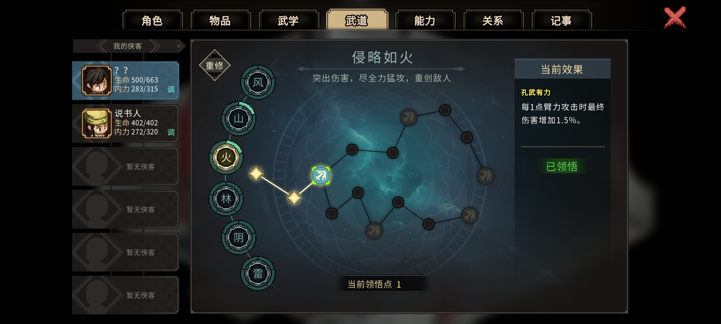 ★准备工作: 用经验升一下级,武道点第一个风(不点风无法出手)