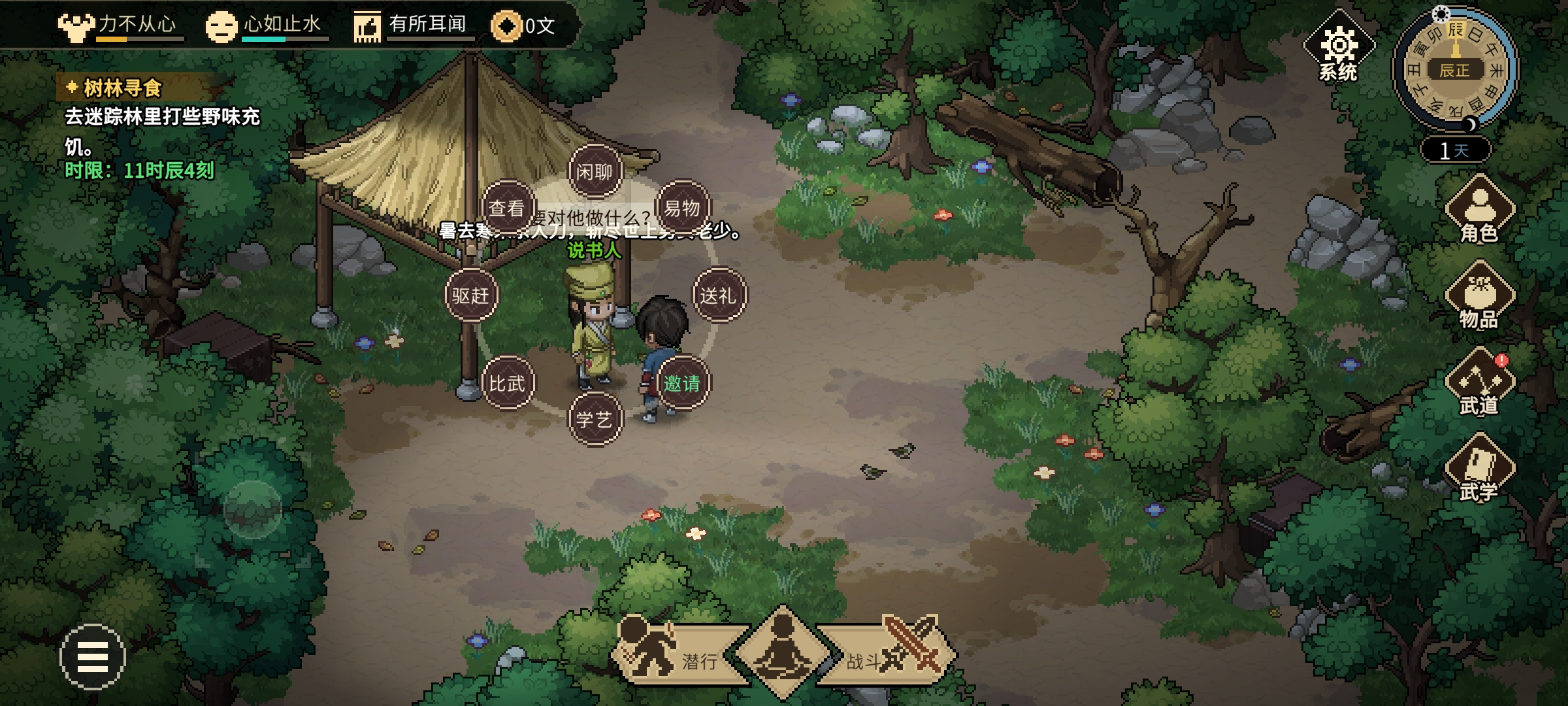 直接睡四个时辰,出门去十字坡找大哥。(大地图上走到十字坡位置会触发)