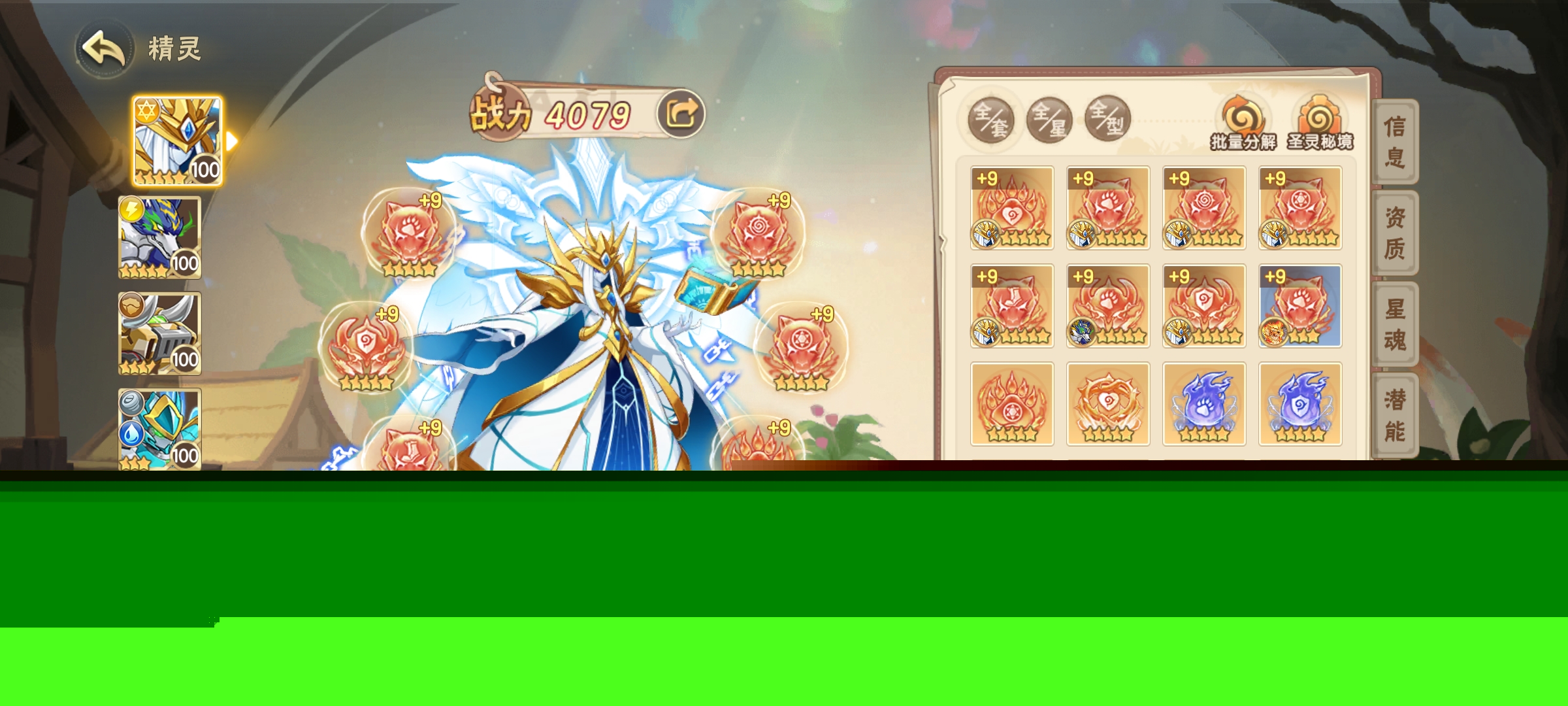 我个人建议:主要凑套装效果,然后拿4星圣灵替补,4星以下圣灵当升级材料。