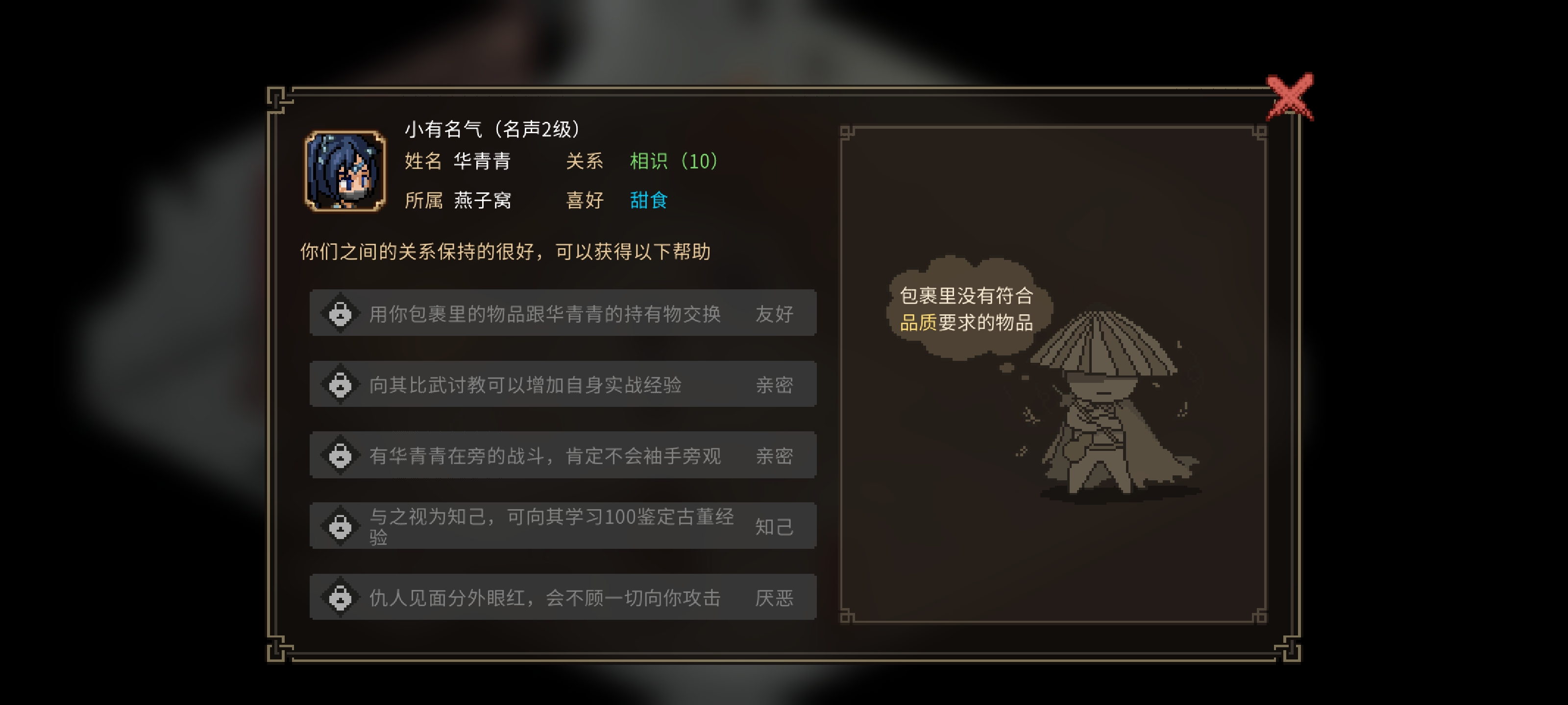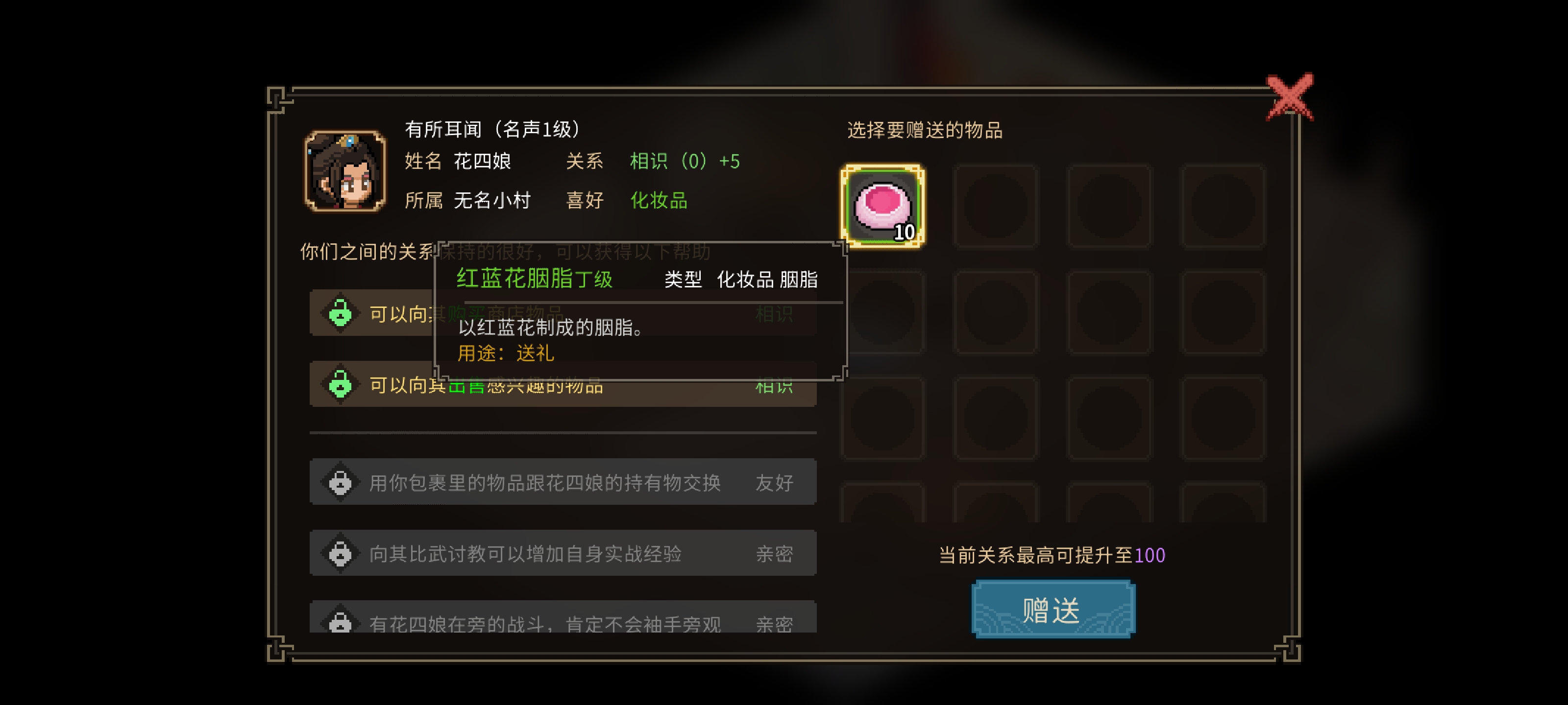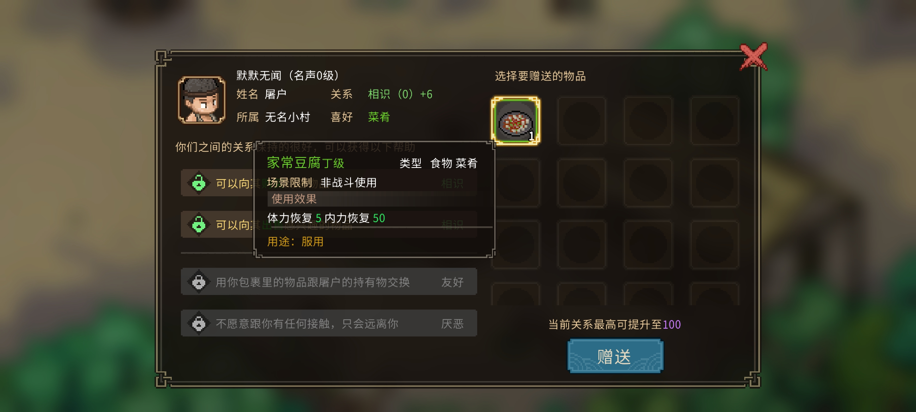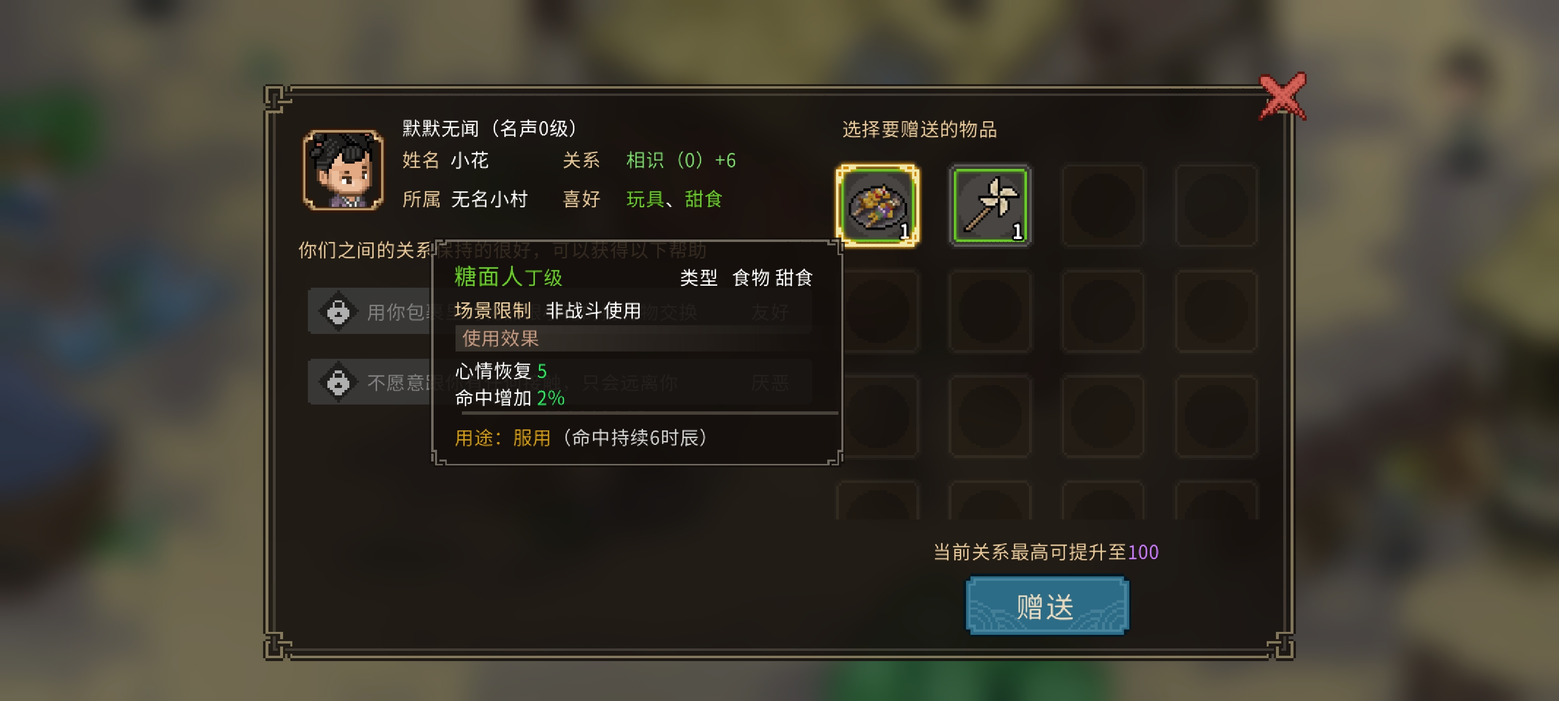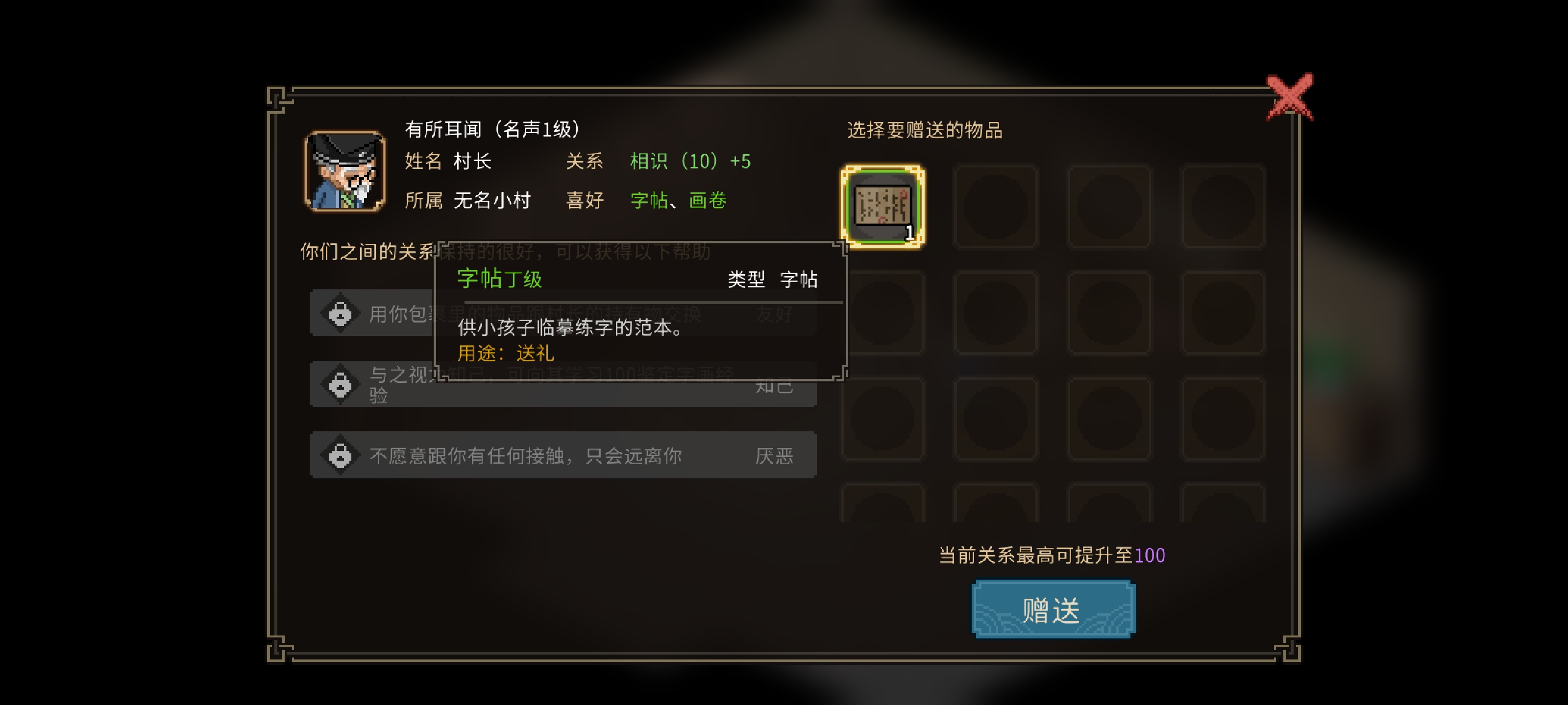 《大侠立志传》npc喜好物品(好感度)送礼攻略