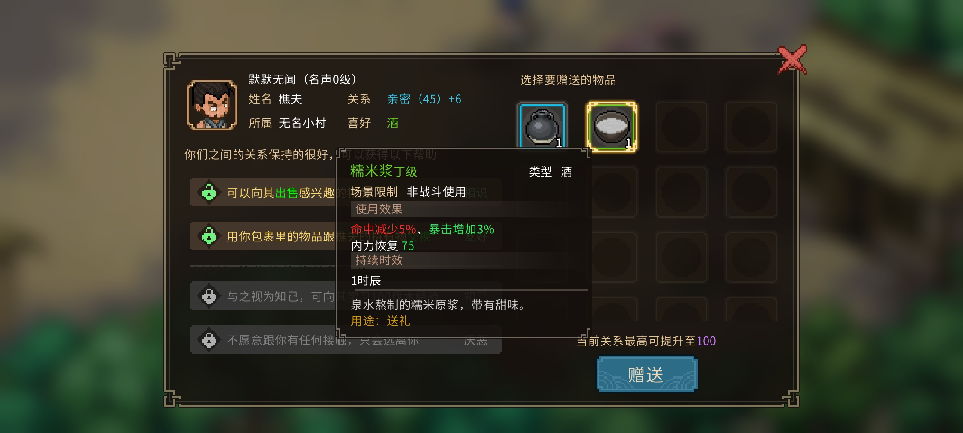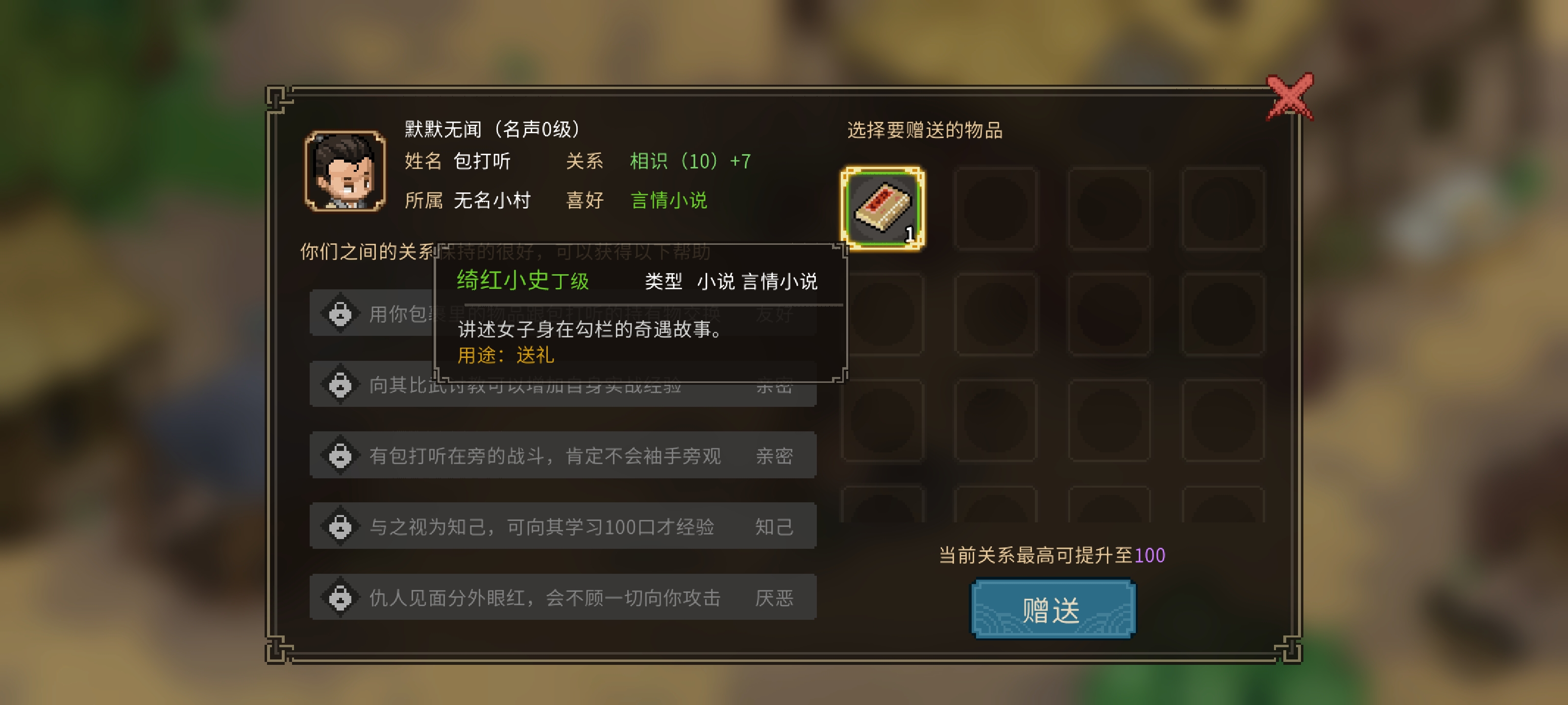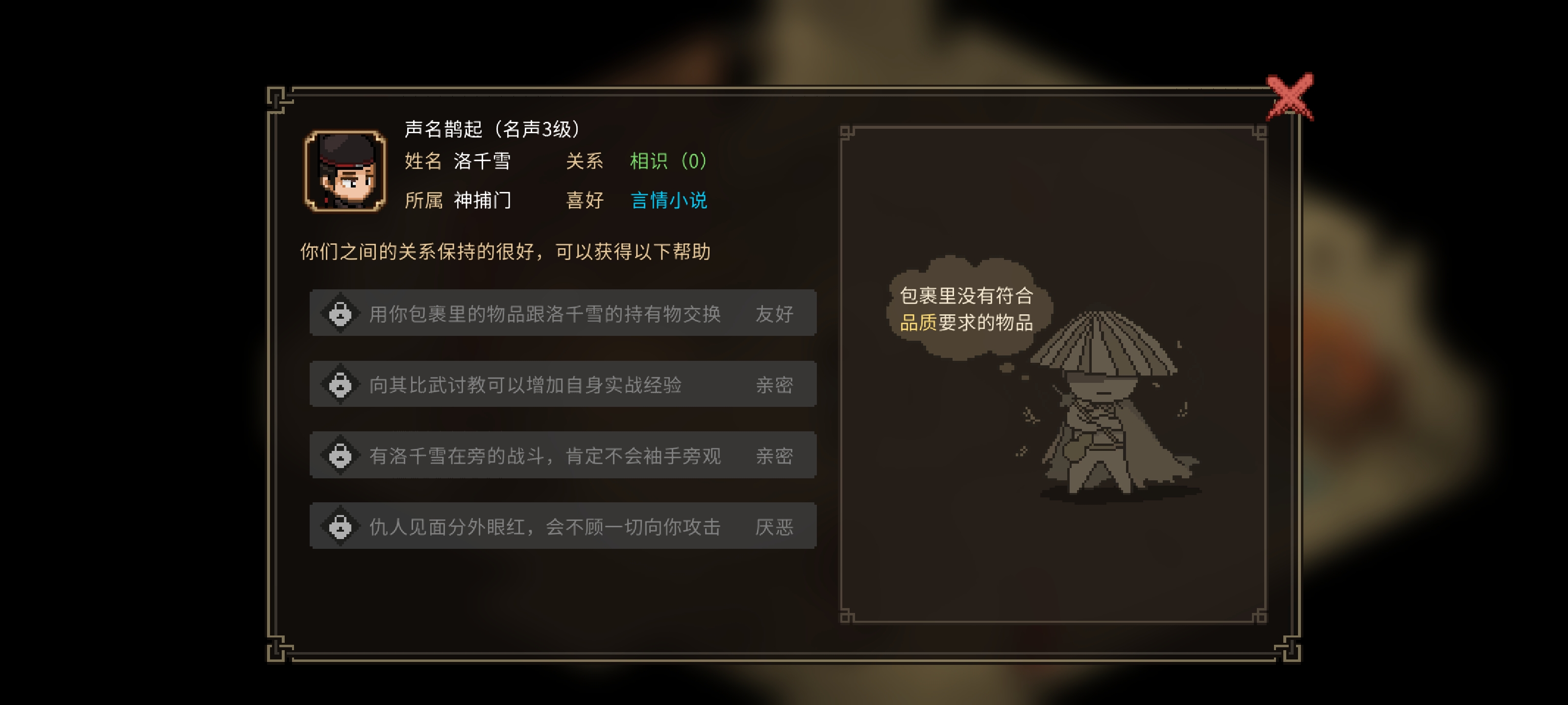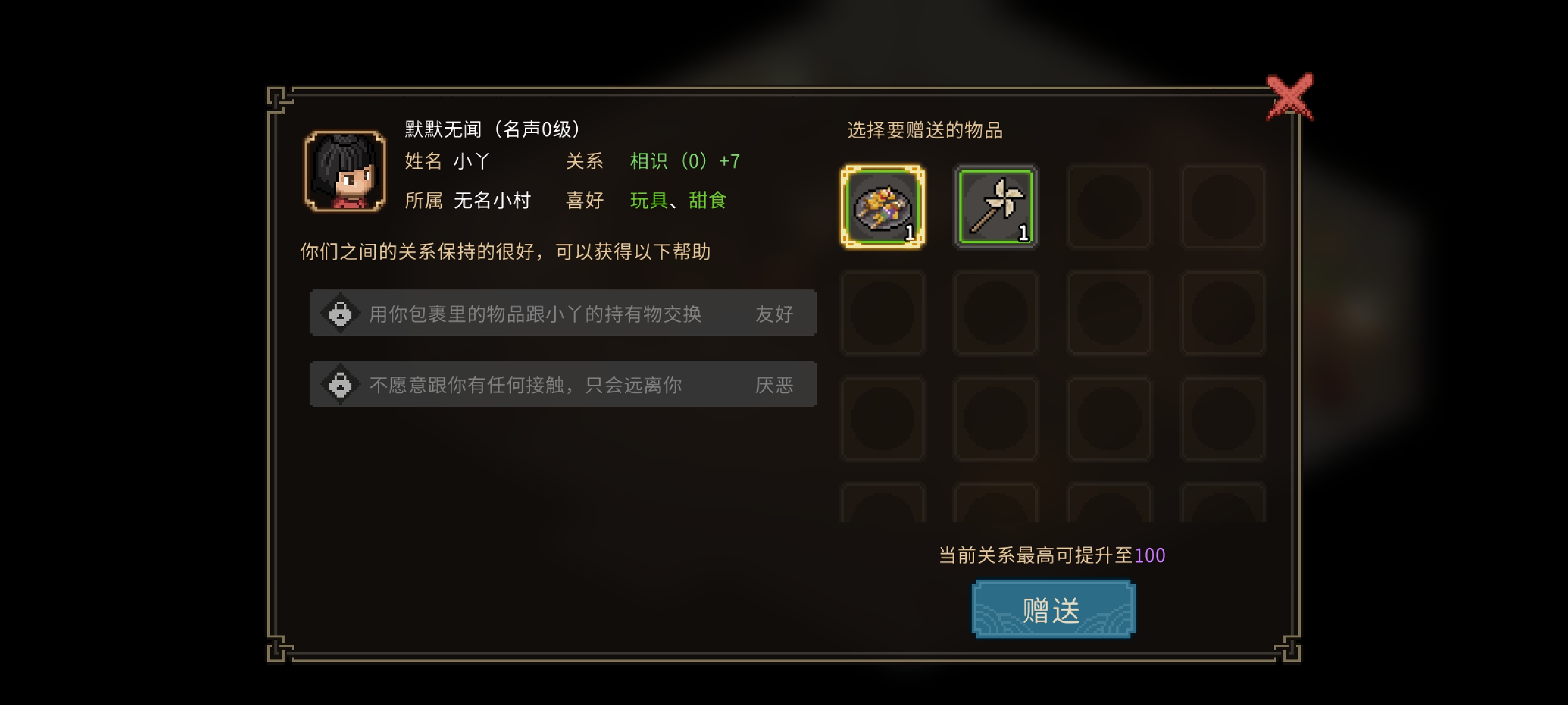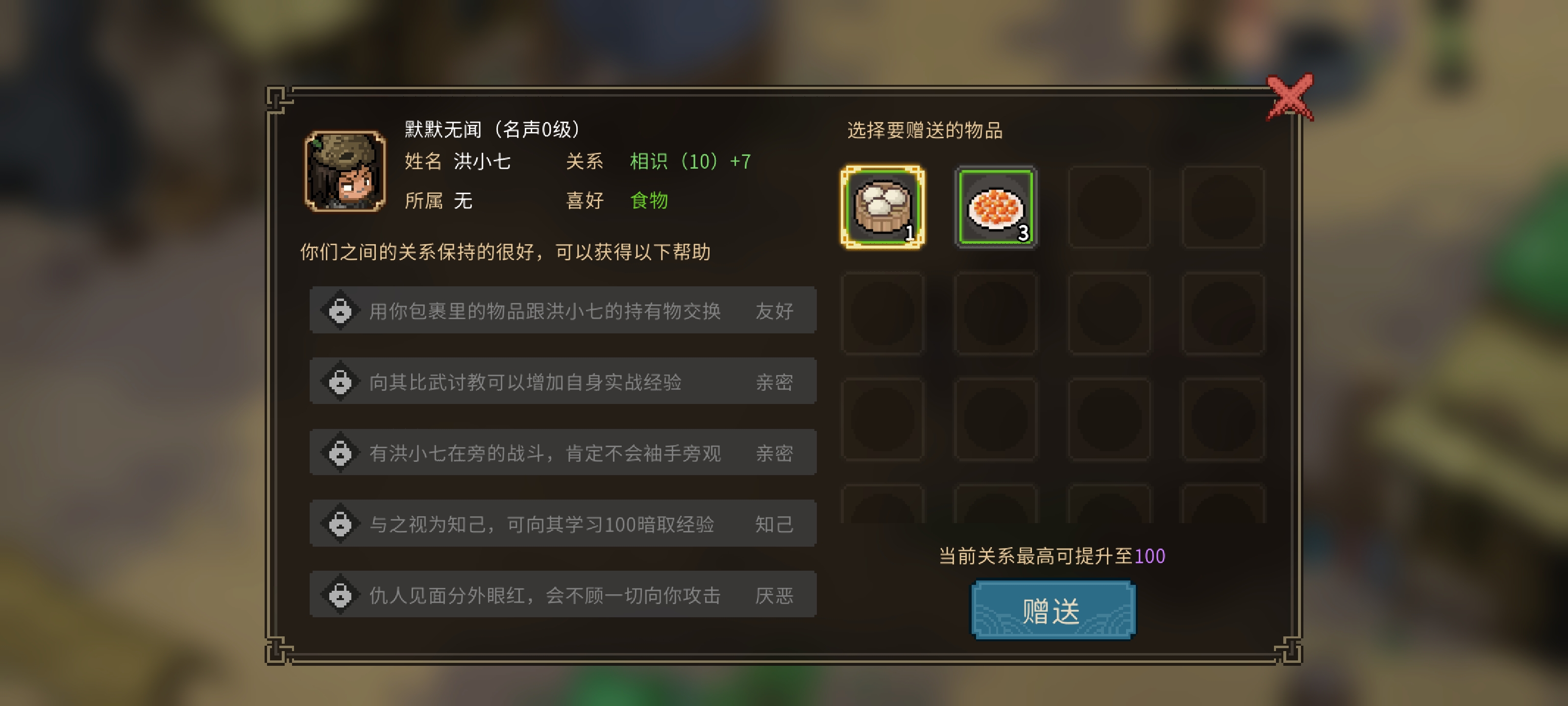 《大侠立志传》npc喜好物品(好感度)送礼攻略
