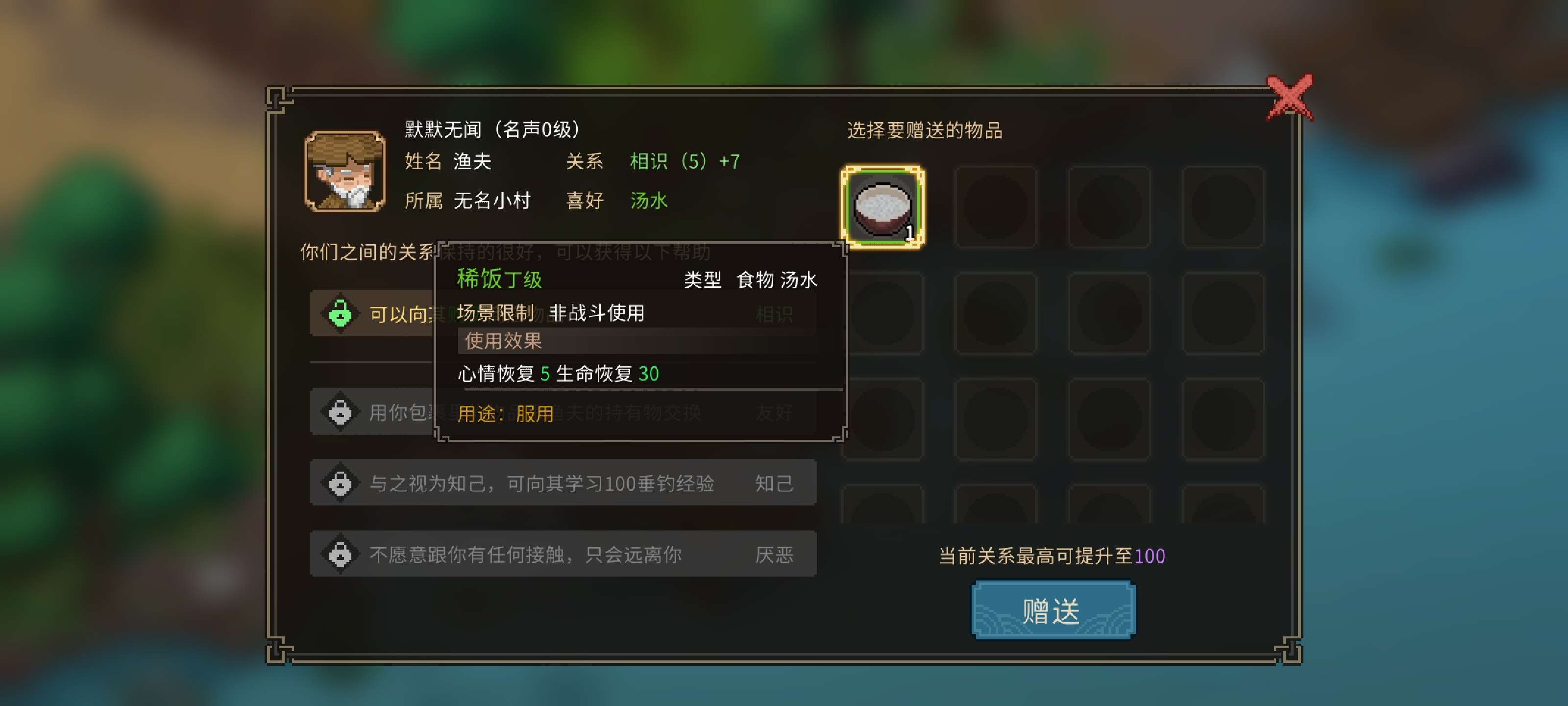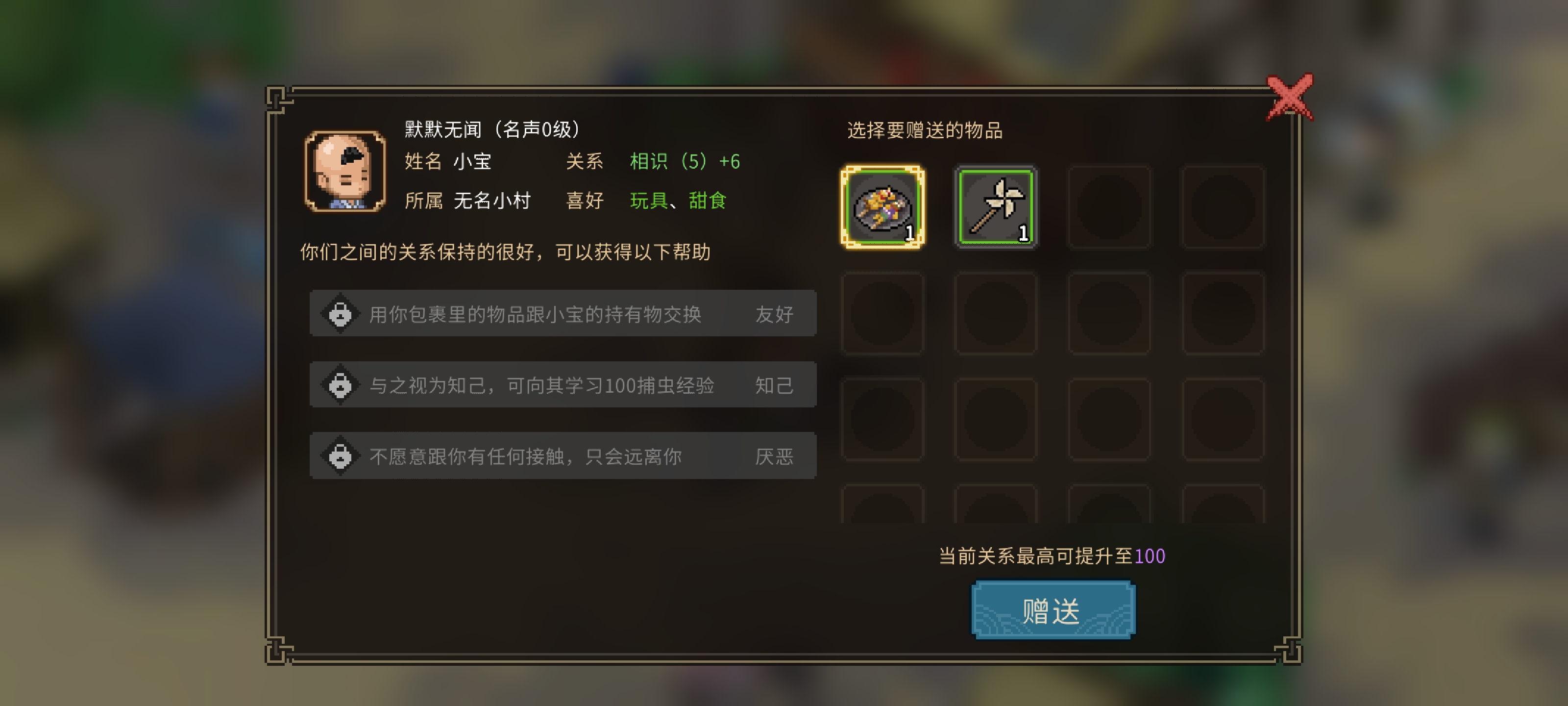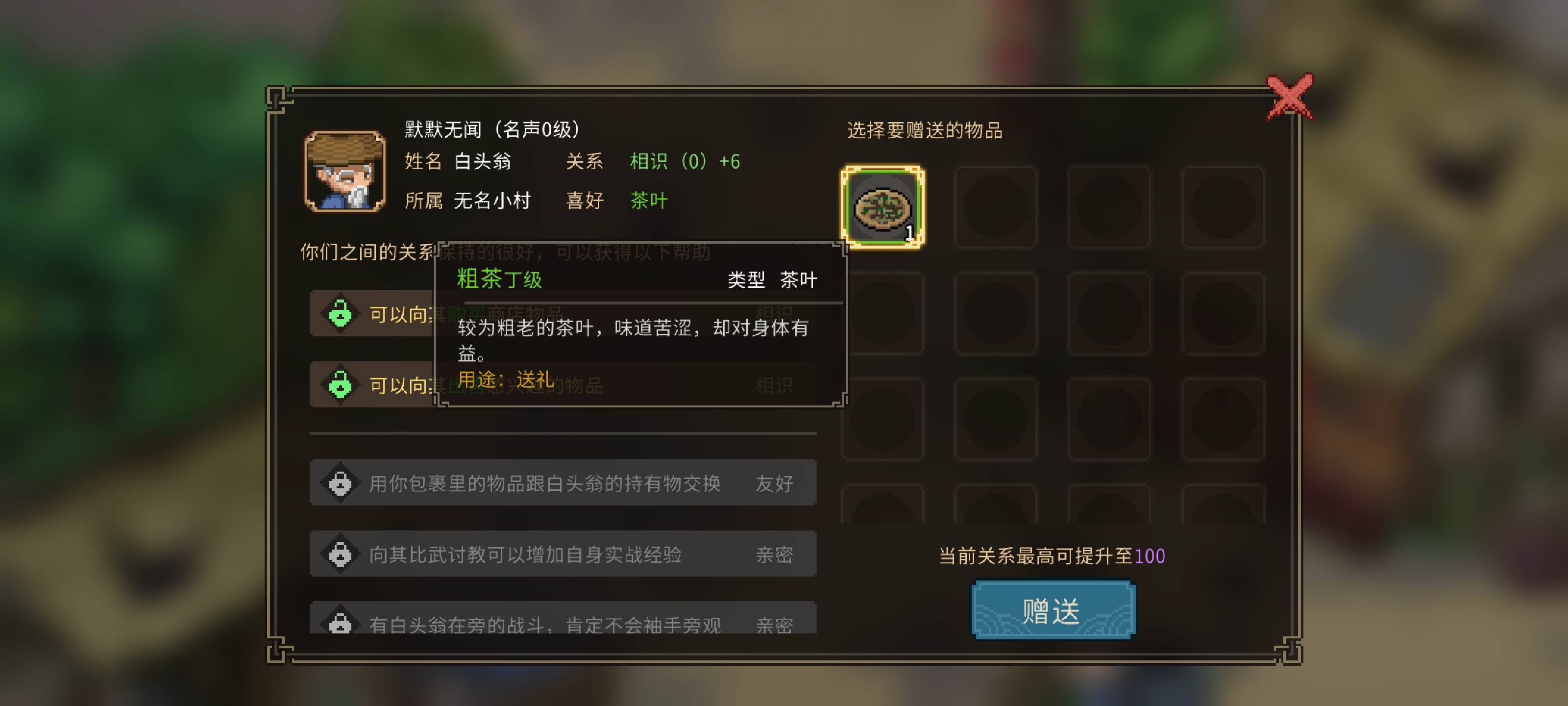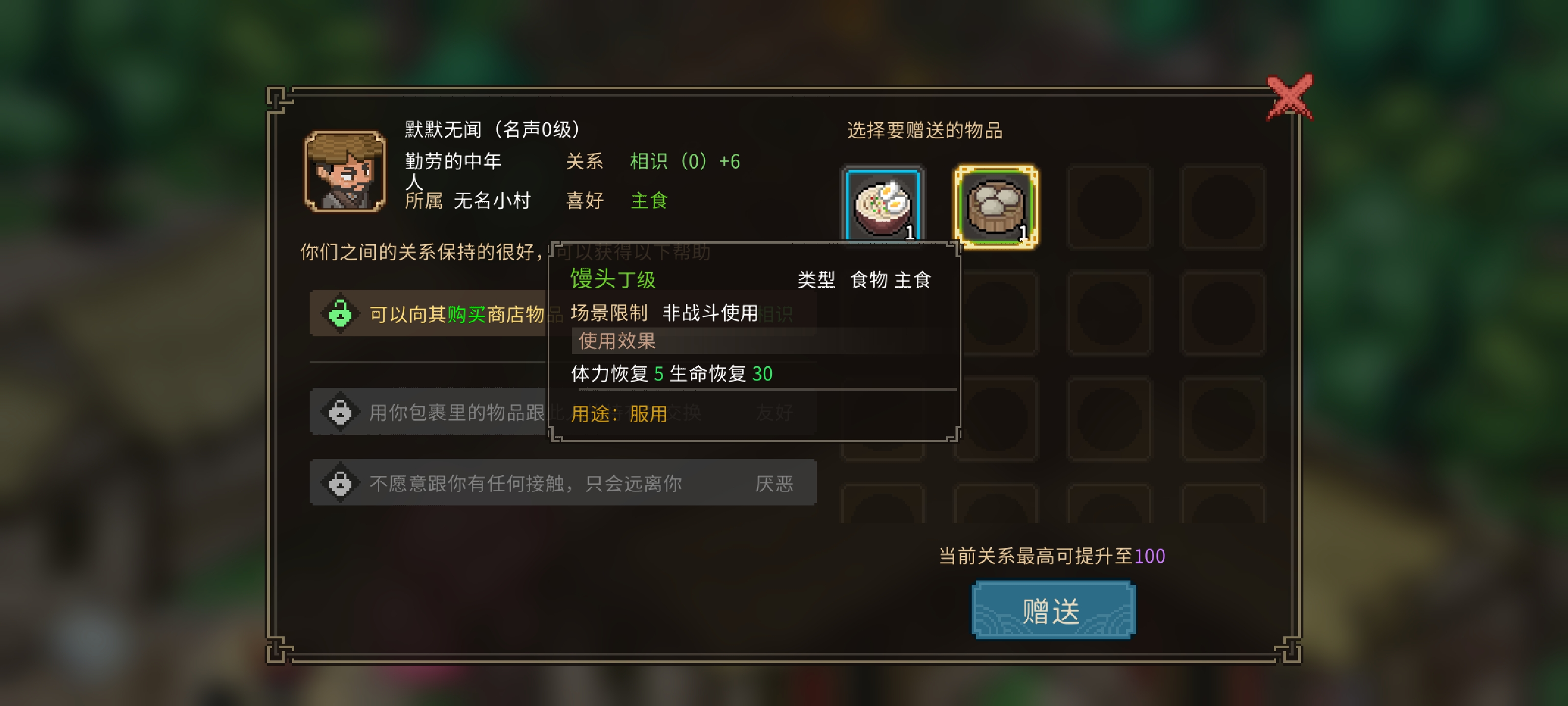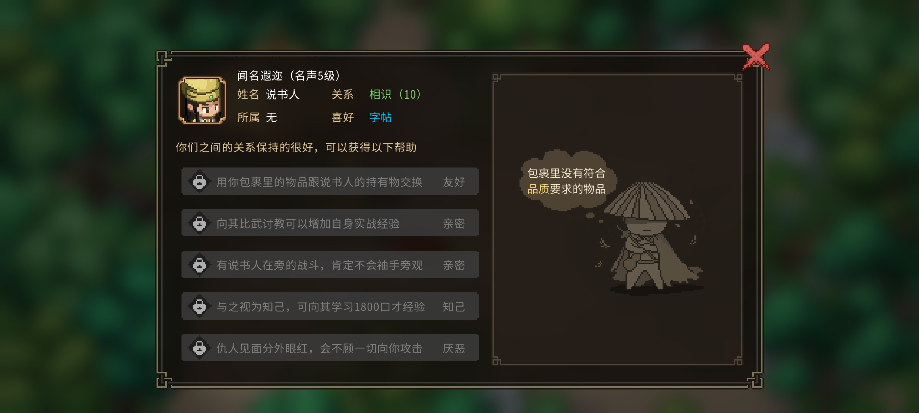 《大侠立志传》npc喜好物品(好感度)送礼攻略