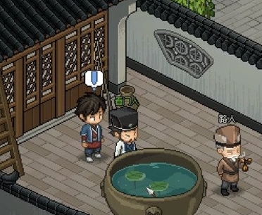 与看门人对话,选择有钱难买爷高兴,即可打开水缸下的密道,进入斗技场。
