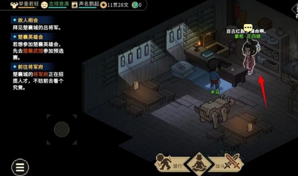 1、先前往无名村的客栈,进入客栈里找到花四娘。