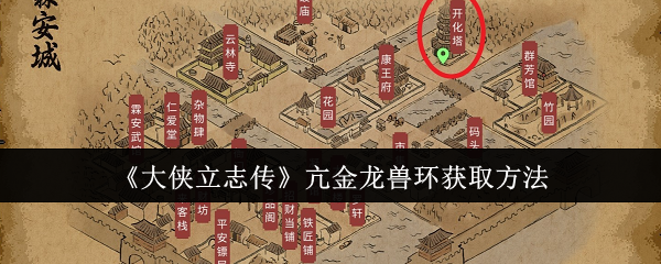 大侠立志传亢金龙兽环怎么获取?在大侠立志传游戏里很多道具对完成任务和提升角色等级很有帮助,比如亢金龙兽环就是一个非常重要的道具,大家要先来到在霖安城的【开化塔】,登上塔顶后开启宝箱获得。下面小编给大家整理了大侠立志传亢金龙兽环获取方法,希望能给各位玩家带来帮助。
