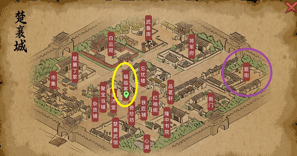 1、先来到楚襄城【福临客栈】,找到【路人乙】对话,即可获得【脏街拍卖会】传闻。