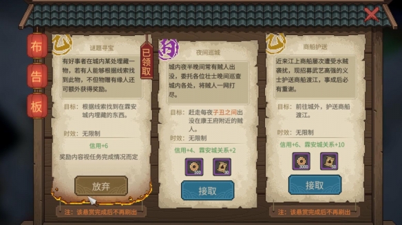 1、先去【霖安城】的布告板上接取乙级任务【谜题寻宝】;