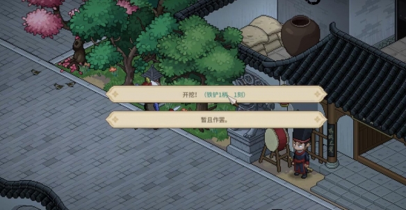 4、去【衙门】来到树下选择【开挖】获得碎羊皮完成任务。