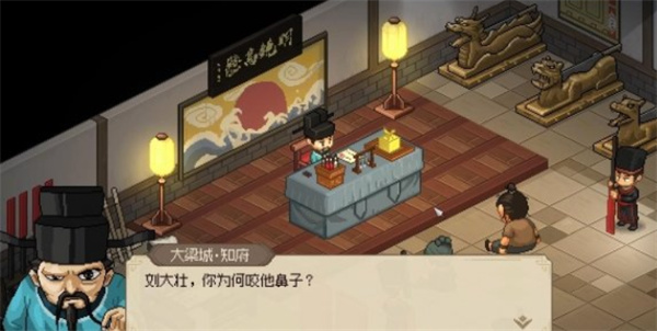 首先,前往大梁城,在进入衙门时将会触发知府的断案事件。
