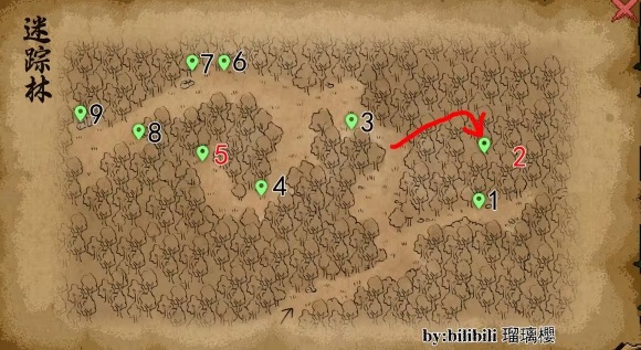 a、获得迷踪林地图,获知无名地区-无名小村位置,樵夫关系+40。
