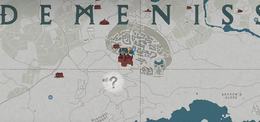 传送至德梅尼斯城中央广场,找到横跨主河道的中心石桥,这是城内最显眼且最大的石拱桥。玩家需要下到桥底区域,站在面向河道内侧的桥墩前,注意不是外侧位置。