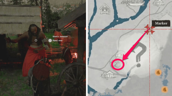 最后从采矿点向西南方向前进,前往地图标记的位置。将 2 块铁矿石交给雷特的助手。