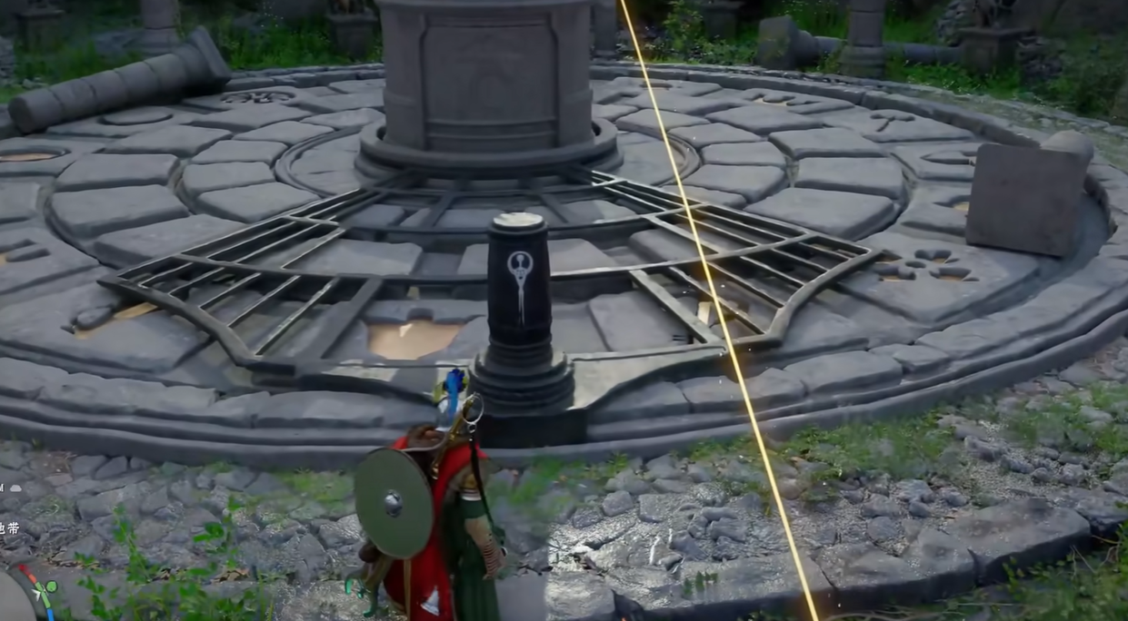 首先是前置准备阶段,玩家抵达遗迹广场后,需要找到中央发光天使石像。此时必须使用千均之力移走广场内所有挡路石柱,否则框盘将无法转动。清理完毕后,靠近中央石像触发机关,地面随即出现多层旋转框盘,为后续解谜做好准备。