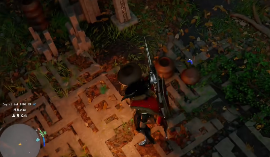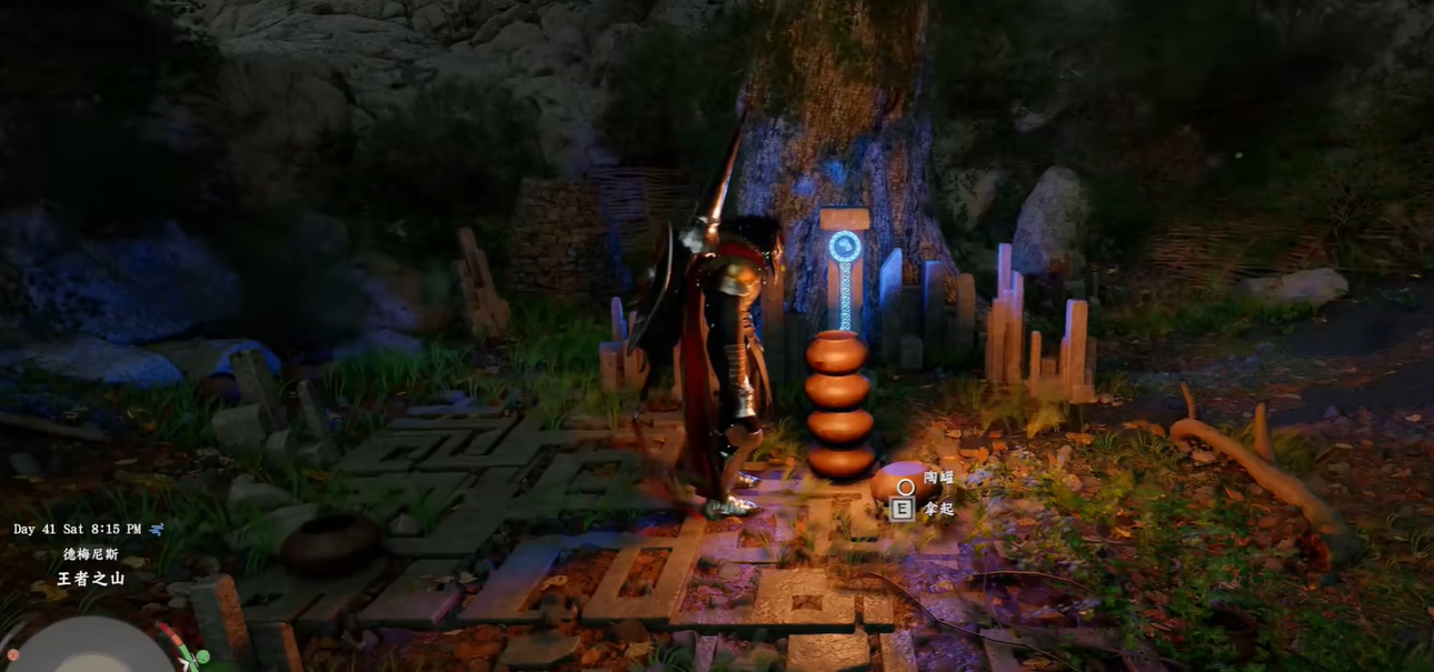首先前往王者之山古代遗迹,找到中央固定陶罐与四周散落的陶罐。使用近战或远程攻击击碎所有可交互陶罐,从而获取堆叠所需的素材。