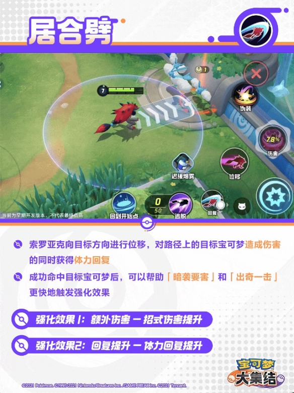 强化效果2:位移期间命中目标宝可梦获得体力回复