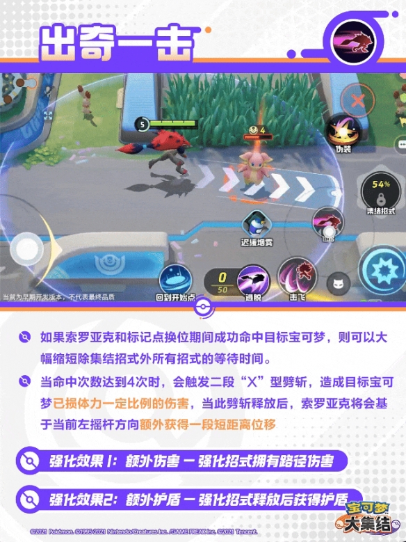 如果索罗亚克和标记点换位期间成功命中目标宝可梦,则可以大幅缩短除集结招式外所有招式的等待时间。