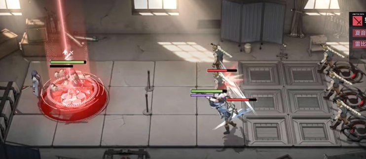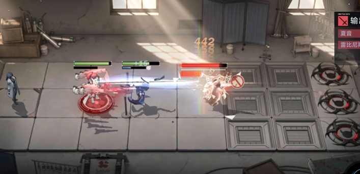 然后夏音挪到围栏后的格子上再补充一个能量球,再往后挪一格,开技能。