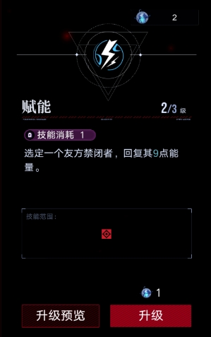 选定一个友方禁闭者,回复其8点能量。