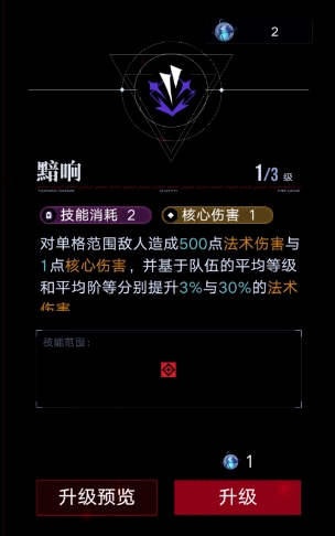 对单格范围敌人造成500点法术伤害与1点核心伤害,并基于队伍的平均等级