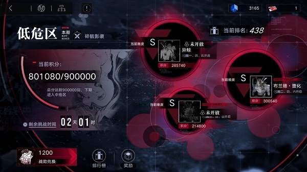 1、【破碎防线】分为[低危区]、[中危区]、[高危区]三种难度,每期玩家到达目标分数后,下期将进入更高难度的区域。