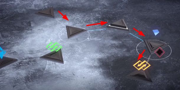 2、之后我们会被传送到一个新的区域中,然后继续按照下图的箭头指引移动。