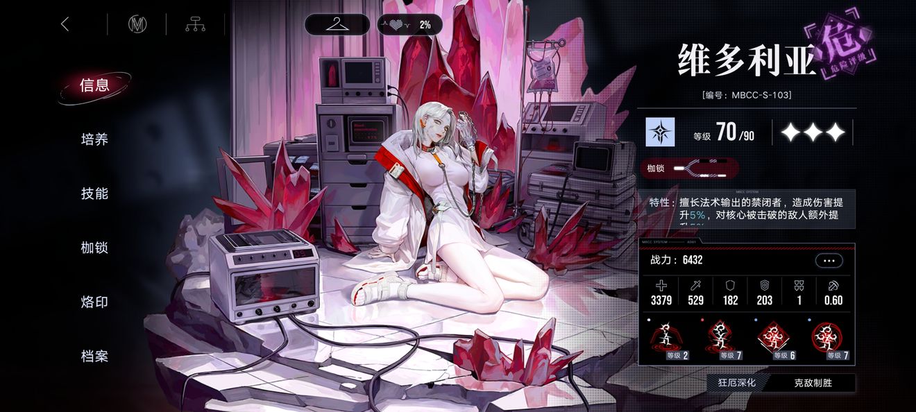 强度很高,楼主中危守家者就是靠维多利亚过的,二阶70级即可22w+。要说确定就是依赖奶妈,维多利亚开大招损失当前生命值百分之五十生命,每损失50点生命加一点攻击。这角色非常依赖奶妈,不是说生存的问题,而是你扣的血能不能加满攻击力,这角色对攻击力非常的敏感。当时我选择fox辅助只能21w,选择艾瑞尔就能上22w。
