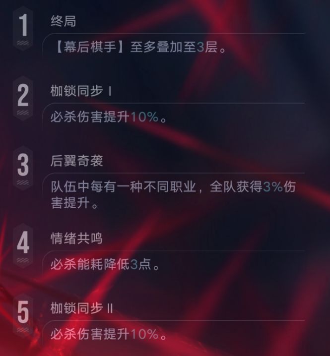 接着再从伊琳娜的枷锁上我们可以看到,其核心的质变枷锁在于1、3两阶,其中3枷锁带来的全队伤害提升是非常具有价值的,一场战斗普遍我们都会至少上阵4-5个职业的禁闭者,而这样就可以增伤12%-15%以上,且这个增伤是针对全队禁闭者的,因此如果大家有能力的话,一个3枷锁的伊琳娜可以为全队带来非常可观的伤害增益。