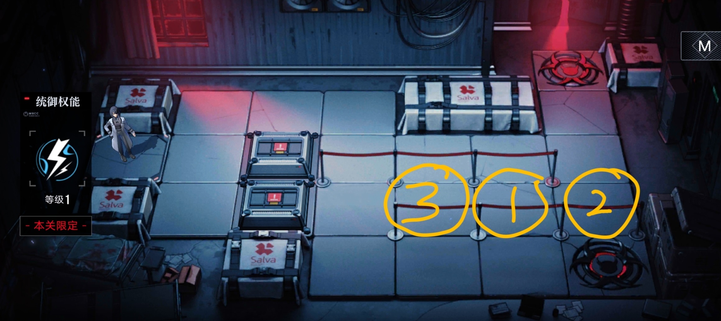 3、第三波,给【娜恰】充能加点,移动到3的位置,然后释放必杀清理掉小兵;再充能一波,击杀第二波小兵,关卡就结束了。
