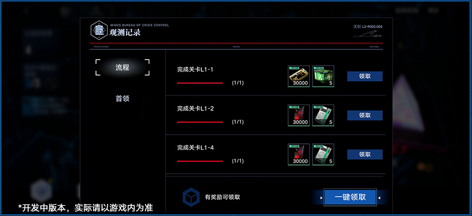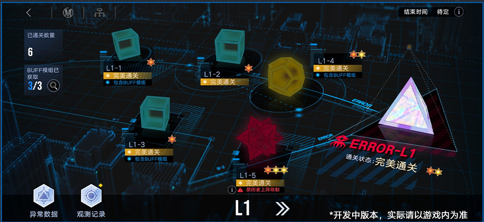 活动期间参与关卡,可以依据相关的目标达成进度完成限时任务[观测记录]和成就[异常数据]中的内容,领取相应的奖励。