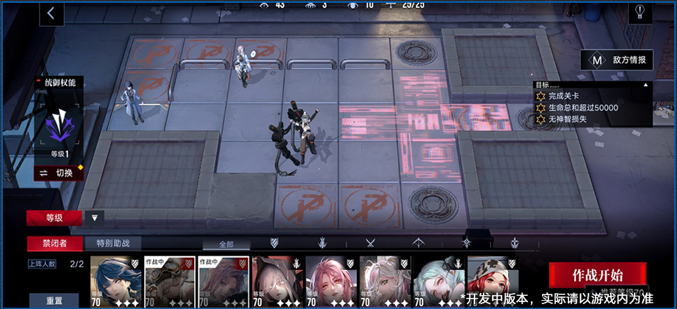 在L1、L2层都有应用了阵容限制条件的关卡,在区域层级地图有相关提醒样式。