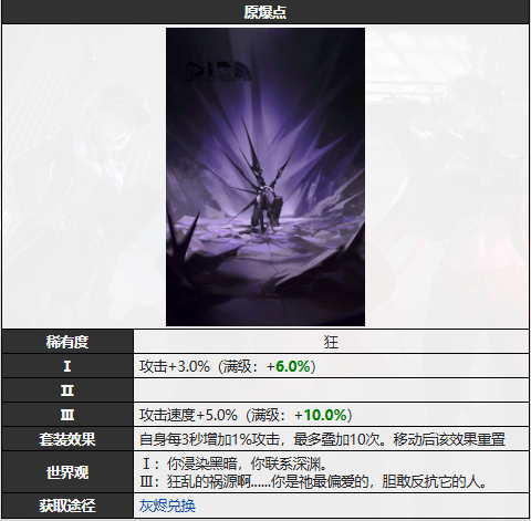 《无期迷途》的原爆点烙印会让携带者在战斗中时会使携带者自身每3秒增加1%攻击,最多叠加10次。移动后该效果重置。接下来就由小编给大家带来了详细的《无期迷途》原爆点烙印图鉴,希望这篇文章可以帮到大家!