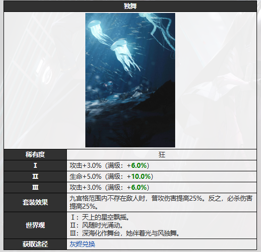 套装效果:九宫格范围内不存在敌人时,普攻伤害提高25%。反之,必杀伤害提高25%。