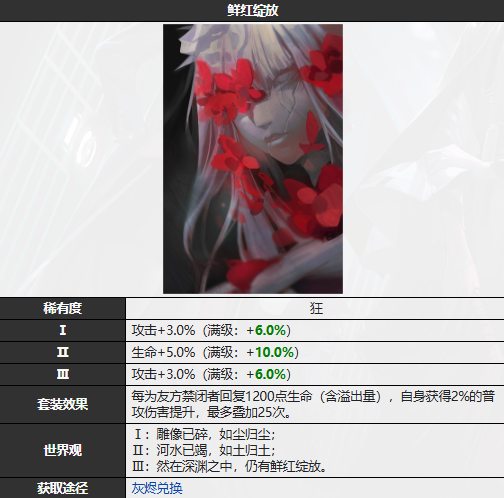 《无期迷途》鲜红绽放烙印在战斗中每为友方禁闭者回复1200点生命(含溢出量),自身获得2%的普攻伤害提升,最多叠加25次。接下来就由小编给大家带来了详细的《无期迷途》鲜红绽放烙印图鉴,希望这篇文章可以帮到大家!