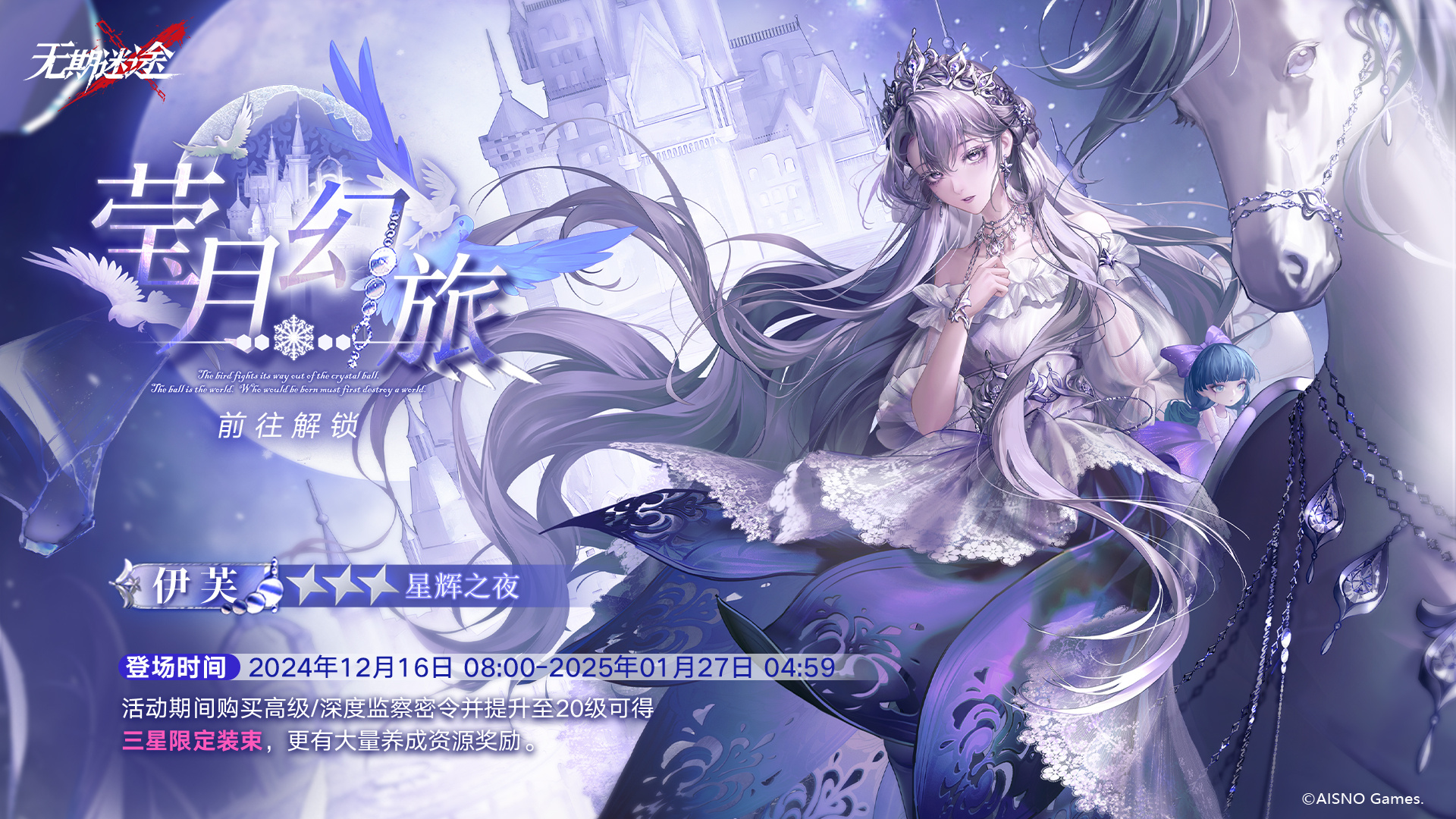 ■监察密令每赛季拥有不同主题,本期开放「莹月幻旅」赛季,将密令等级提升至20级并解锁高级或深度监察密令后均可获得当前赛季的专属装束【伊芙·星辉之夜】★★★装束;当前赛季结束后,专属装束将暂无获取途径。