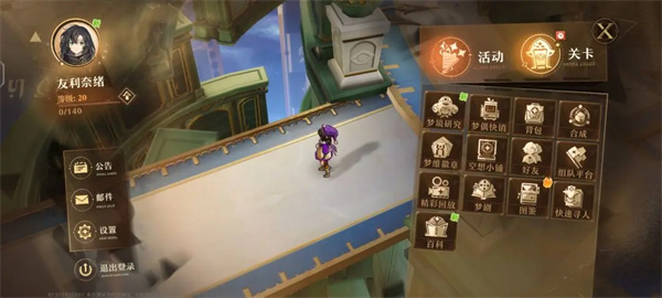 游戏的多数系统功能都在右上角的快捷界面,关卡主要是给角色刷取资源的地方,比如角色进阶和升级技能需要的材料以及抽卡资源;梦境研究可以解锁或升级系统,做新手引导任务即可轻易解锁;空想小镇就是利用抽卡副产物和快销币换取材料的地方,还有一个快速寻人功能,可以引导玩家去指定角色的所在地,主要是找拉比重置梦灵等级(65级之前都可免费重置),也可邀请其他梦灵提高好感度