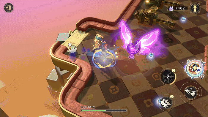 普攻:范围【近】,西西弗使用螺旋刺剑进行连续攻击,分为三段。第一段为前冲刺击,第二段为交叉攻击,第三段则快速接近目标并挥出大范围的扇形攻击。