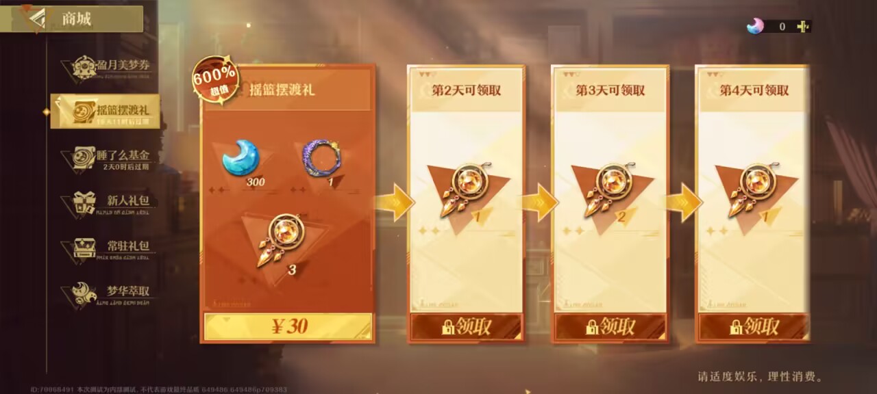 中氪:6元+月卡+摇篮(礼包内最划算)