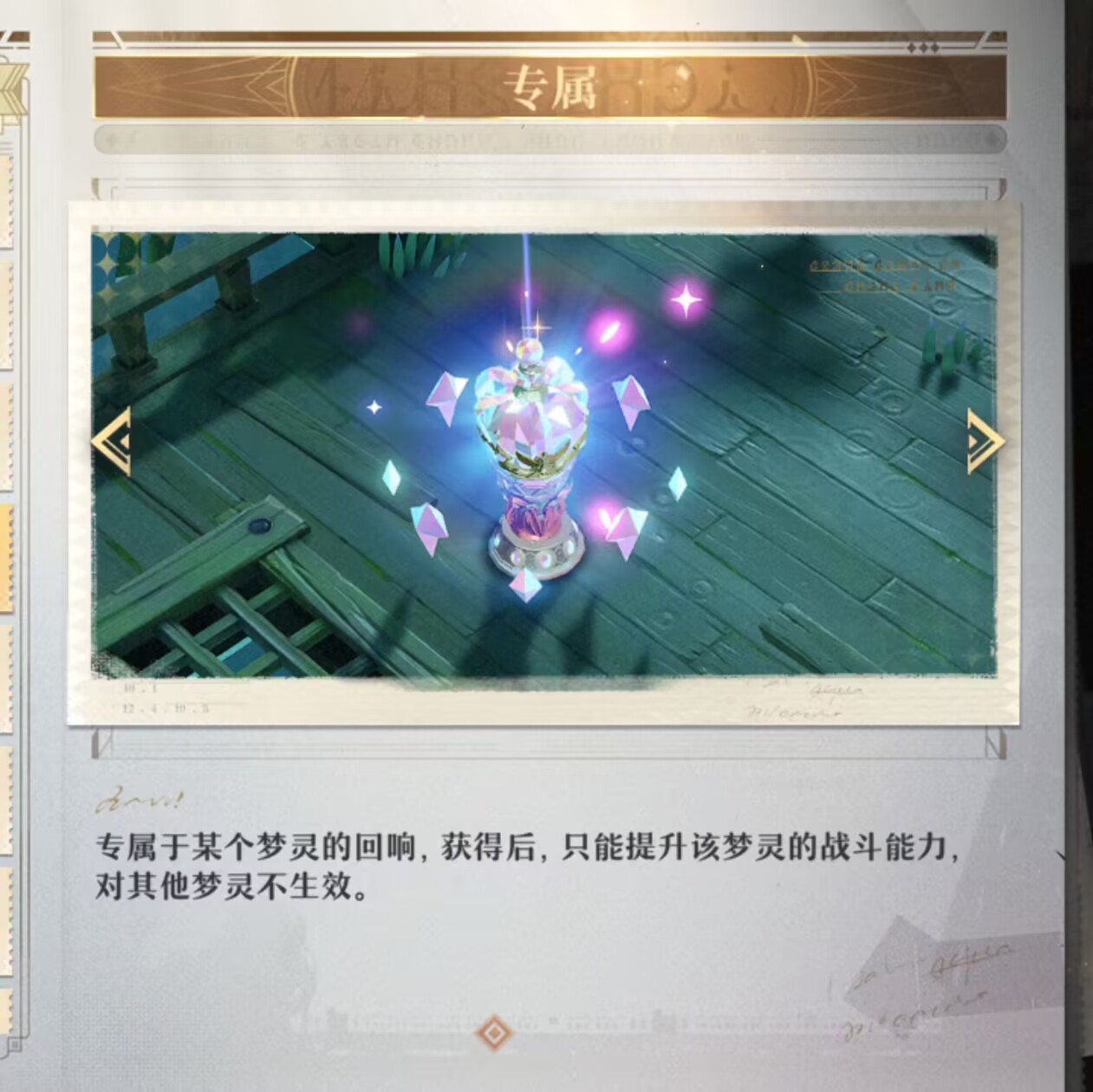 梦灵积累足够的回响力量之后,2名梦灵各自集满5个自己的回响,才能激发连携回响。