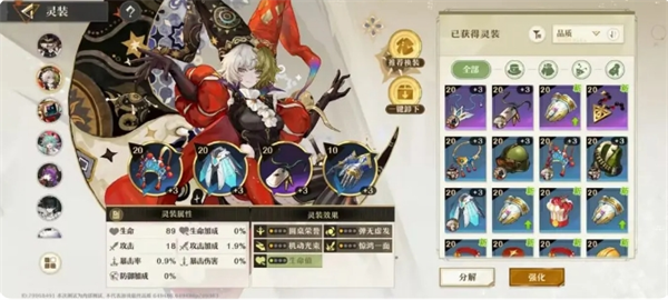 灵装:就是常说的装备,刚开始过剧情的时候把所有好装备都给荒诞或者未来之梦,其次刷了材料本后再替换。(一定一定要强化装备,白板装备一点用没有)